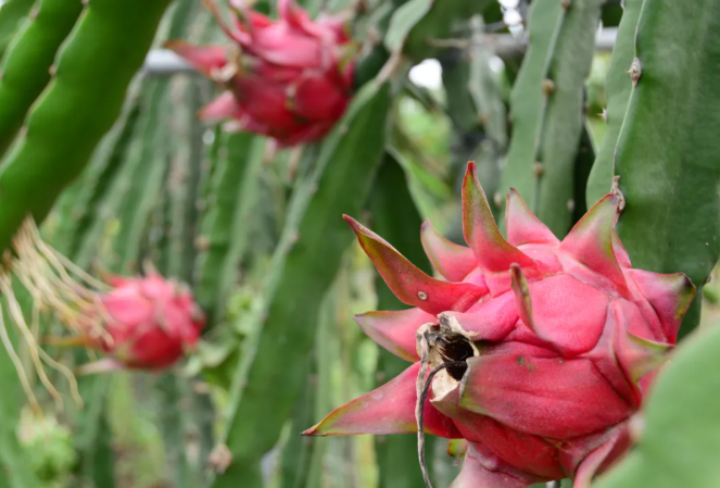 中農(nóng)富玉農(nóng)場(chǎng)種植的火龍果品種為臺(tái)灣胭脂紅,果肉是紅色的,營(yíng)養(yǎng)豐富、功能獨(dú)特,它含有一般植物少有的植物性白蛋白以及花青素,豐富的維生素和水溶性膳食纖維,屬于涼性水果,味甜,多汁。