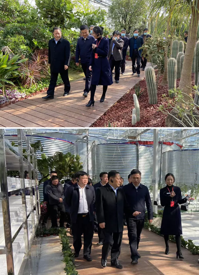 在會前,殷美根、盧天錫等與會人員實地考察何市、征村、竹坪等鄉鎮,通過考察,修水縣“干凈整潔、規范暢通、生態宜居”的美麗鄉鎮建設新畫卷給大家留下了深刻印象。考察中,與會人員來到何市鎮現代農業云中心,實地考察了由中農富通負責深化設計并承建的九江國家農業科技園何市鎮智能溫室及配套設施建設項目。