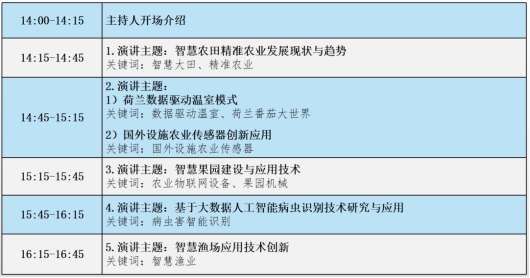 “碼”上報名,線上觀看 線下參會,添加微信報名 2022智慧農業應用與創新論壇預告 時間地點 2022年5月21日下午 北京·中國國際展覽中心(老館) 組織機構 主辦單位:北京中農富通園藝有限公司、中農富通智庫·鄉村產業發展研究院 承辦單位:北京中農富興農業信息科技有限公司 協辦單位:世信朗普國際展覽(北京)有限公司 會議議程(擬) 趕快掃描下方二維碼報名吧! “碼”上報名 第九屆中國農業精準灌溉創新發展論壇預告