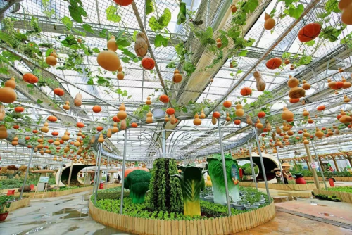 匪藝嘉蔬館館分為4大功能區:入口產業概況、傳統蔬菜、現代蔬菜、未來蔬菜,充分發揮資源優勢,全力培育生態水產、無公害蔬菜,讓游客在游玩時還能感受到農業種植的艱辛。