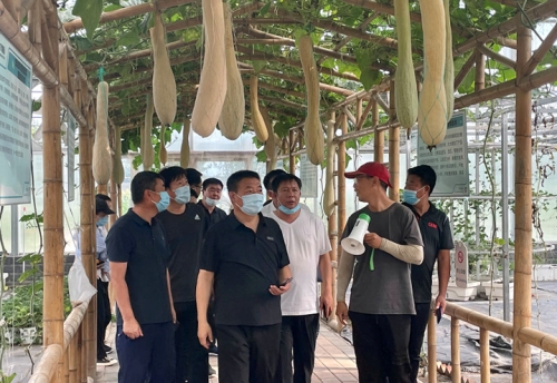 ▼7月19日下午,河北省定州市某鎮領導一行赴中農富通位于北京城市副中心的科研示范基地——北京國際都市農業科技園(以下簡稱中農富通科技園)參觀考察,中農富通副總經理米志強、總工郭顯亮、李玉江陪同。