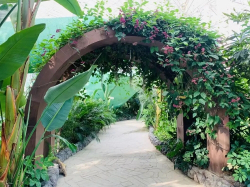 景區(qū)分為九個場館,每一個場館都獨(dú)具特色,給你意想不到的驚喜,荷風(fēng)化雨館以植物中的水循環(huán)為主線,通過具有獨(dú)特水環(huán)境的三種生態(tài)系統(tǒng)——熱帶雨林、濕地、荒漠——場景模擬,凸顯植物在水循環(huán)、水生態(tài)中的重要價值。