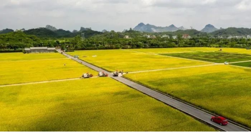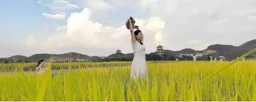 稻浪滾滾,整個水稻田就像一片金色的海洋。