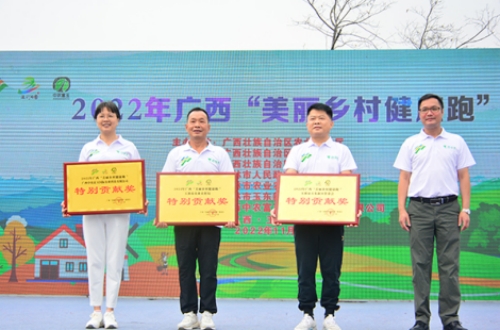 奮斗路上,最美的姿態是奔跑。11月15日,2022年廣西“美麗鄉村健康跑”在充滿豐收喜悅的玉林市五彩田園隆重舉行。自治區14個市的代表隊共150名運動員跑出了新時代踔厲奮發的“三農”風采。廣西中農富玉國際農業科技有限公司作為此次活動的支持單位,圓滿協助完成了此項重要賽事的籌備工作,獲得了特別貢獻獎。