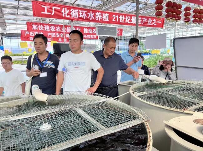 在魚菜共生項目區,參訓學員考察了水產養殖與蔬菜生產復合耕作體系,對這種巧妙的生態設計表現出了極大的興趣,紛紛向講解人員提問,了解相關技術和產業優勢。
