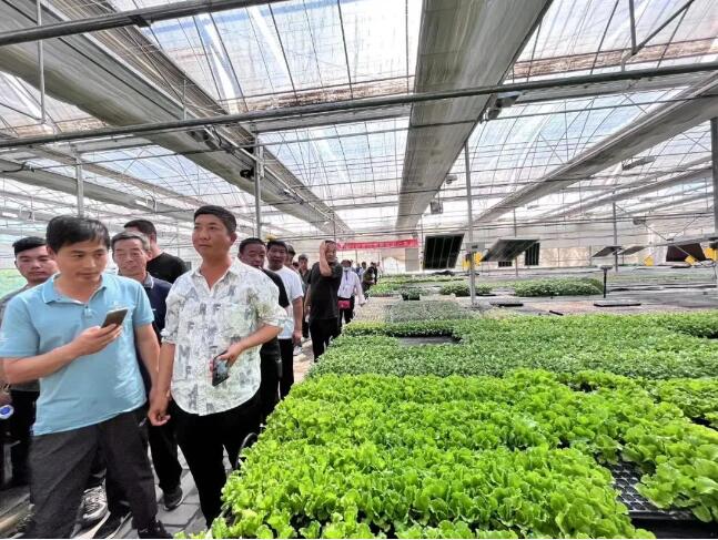 在育苗工廠,參訓學員考察了全自動播種機、全自動智能控制系統、水肥一體化設備及智能灌溉系統、全自動物流苗床系統以及石墨烯可控光熱云端控制系統等整套育苗系統。