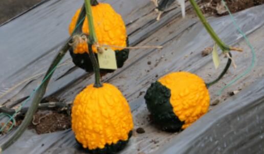 目前園區(qū)種植的觀賞瓜品種有:黃色太陽果、香爐瓜、長柄葫蘆、大亞葫蘆、小淘氣、子孫滿堂、飛碟瓜、多翅瓜、觀賞佛手瓜、龍鳳瓜、拉科塔南瓜、hub南瓜、迷你雪貝、迷你綠貝、天鵝葫蘆。