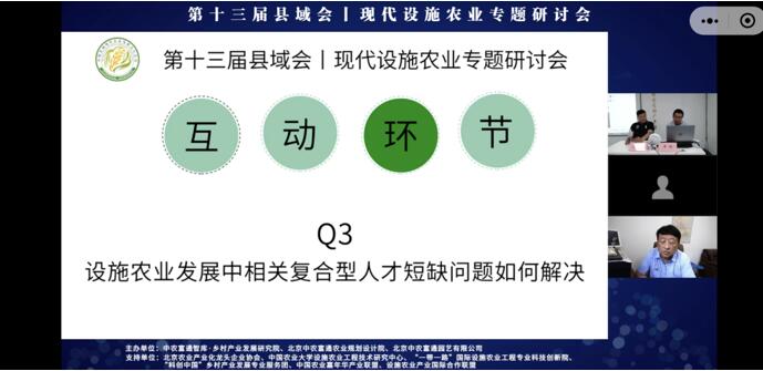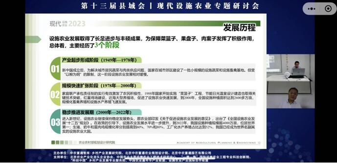 2023年7月20日下午,“第十三屆中國縣域現代農業發展高層會議全年系列活動之現代設施農業專題研討會”在中農富通培訓室以線下結合線上的形式順利召開!會議由中農富通智庫·鄉村產業發展研究院、北京中農富通農業規劃設計院、北京中農富通園藝有限公司主辦,北京農業產業化龍頭企業協會、中國農業大學設施農業工程技術研究中心、“一帶一路”國際設施農業工程專業科技創新院、“科創中國”鄉村產業發展專業服務團、中國農業嘉年華產業聯盟、設施農業產業國際合作聯盟等單位支持。會議通過主題發言、報告發布、互動提問等環節,旨在為行業發展開拓思路、提供出路。截至本次會議結束,中農富通小鵝通、視頻號及其他自媒體平臺共計5000余人次在線觀看。