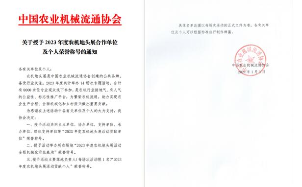 喜訊!中農富通榮獲“2023 年度農機地頭展活動貢獻單位”榮譽稱號