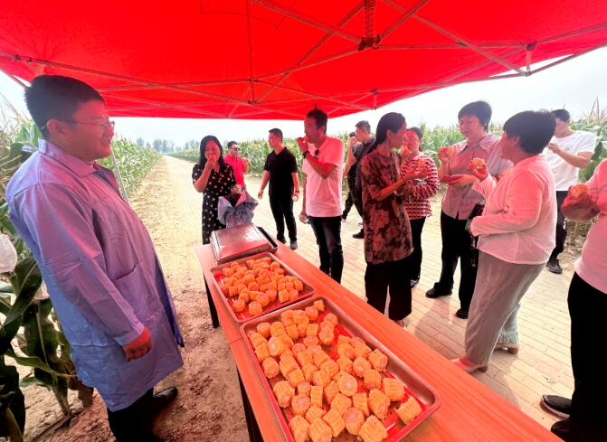 在參觀環節,徐田軍老師介紹了北京市農林科學院玉米所在玉米新品種選育中所作的工作和取得的成果,并現場讓大家品嘗鮮食玉米京科糯336,讓大家對新品種有了更深刻的認識,參會人員就玉米種植管理技術方面也跟徐老師進行了深入的探討;在蔬菜工程中心基地,許超、郭宇兩位老師為大家詳細介紹了聯棟溫室韭菜種植模式和水培種植技術。在座談過程中,蔬菜工程中心許超老師、果樹基地負責人魯工對基地的情況和近幾年主推品種跟大家進行交流。