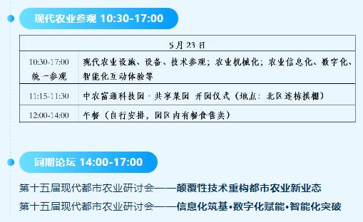 同期將舉辦開幕式、數字人發布、農業社會化服務聯盟成立揭牌儀式、共享菜園開園儀式、園區參觀、農業機械化展示、現代都市農業研討會、農業科技創新研討會等活動,為行業搭建交流合作平臺,促進產學研用協同發展,加強政府、企業、科研院校之間的合作,加速科研成果轉化。