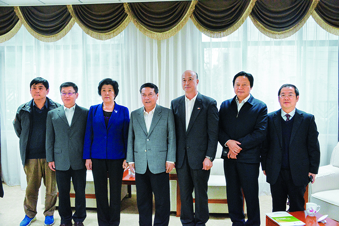 與全國人大農(nóng)業(yè)與農(nóng)村委員會(huì)主任委員陳錫文(左四)國務(wù)院參事室特邀研究員、中國農(nóng)產(chǎn)品市場協(xié)會(huì)會(huì)長張玉香(左三)時(shí)任中國農(nóng)業(yè)大學(xué)副校長張建華(右三)會(huì)面
