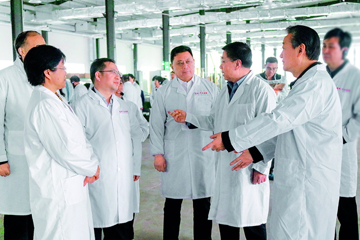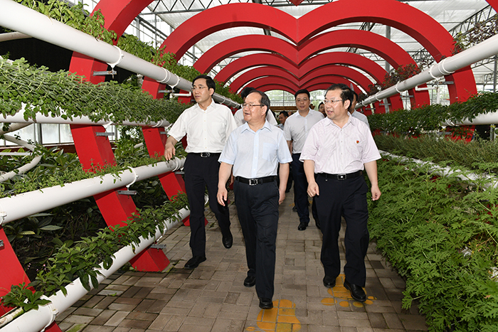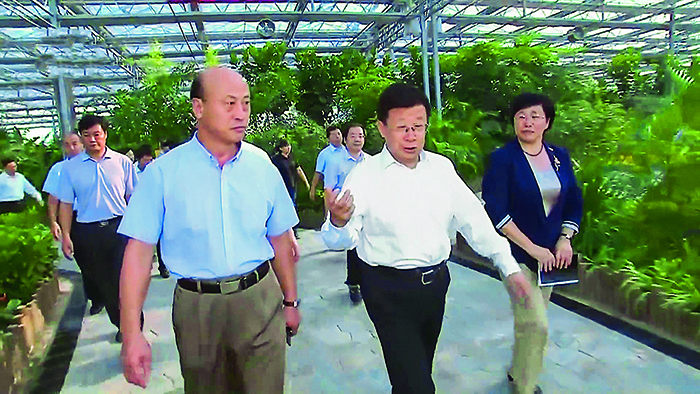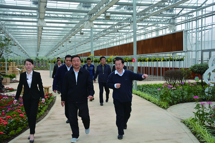 全國人大常委會(huì)委員、全國人大農(nóng)業(yè)與農(nóng)村委員會(huì)副主任委員杜德印(右二)和王剛(右一)蒞臨中國南和設(shè)施農(nóng)業(yè)產(chǎn)業(yè)集群調(diào)研